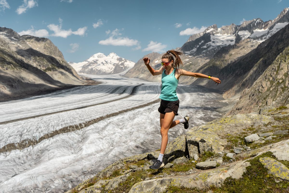 Trailrunning auf dem Aletsch Panoramaweg vorbei an einmaligen Bergseen mit Blick auf den grössten Gletscher der Alpen