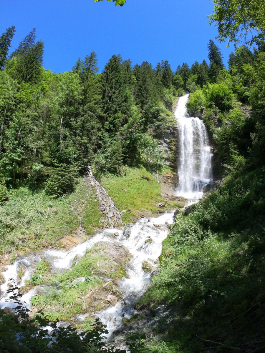 Auf dem T24 bewegen wir uns auf satten Bergwiesen und durch Buchenwälder bis ins Schlappintal. Ein Highlight bildet dabei die rund 70m lange und 19m hohe Schliifitschuggen-Hängebrücke. Eine weitere Sehenswürdigkeit ist der Wasserfall vom Alpbachtobel eingangs Serneus, einem Ortsteil von Klosters mit einem wunderschönen Dorfbrunnen und alten Walserhäusern, der für seinen Charme und Gastfreundlichkeit bekannt ist.