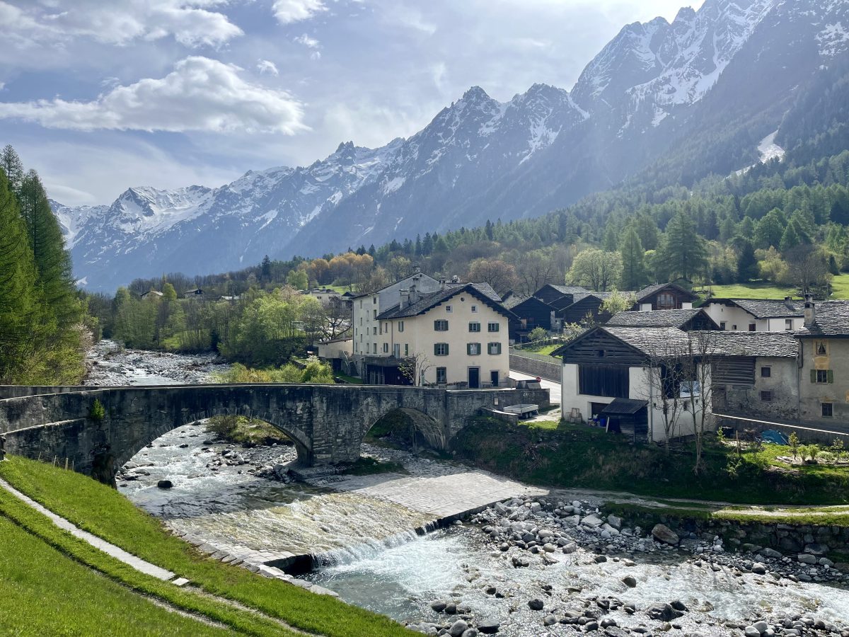 Anreise: Großer Parkplatz Strada Principale 3, 7603 Vicosoprano. ÖV Haltestelle “Vicosoprano – Helvetia” (öffentliche WCs, Laden für Elektroautos und kleiner Supermarkt)
