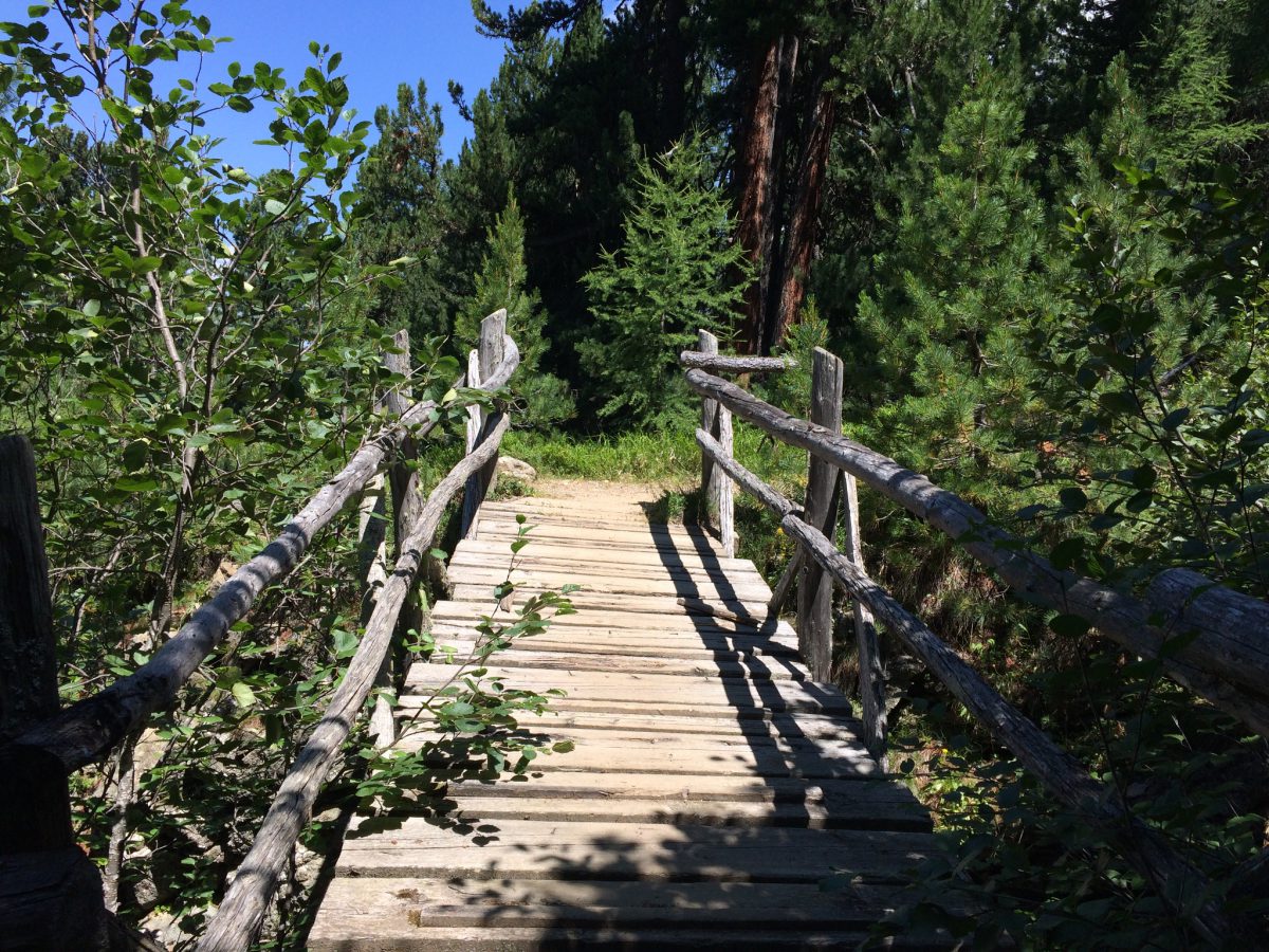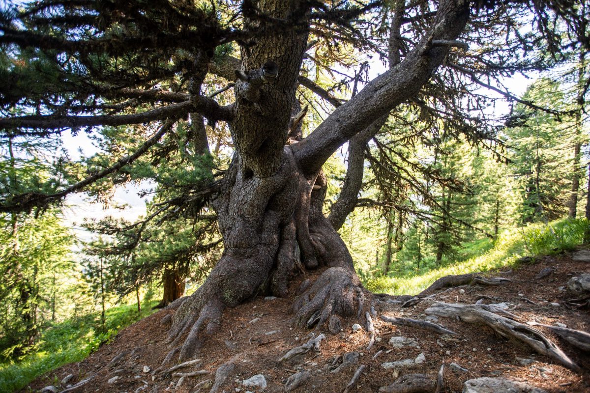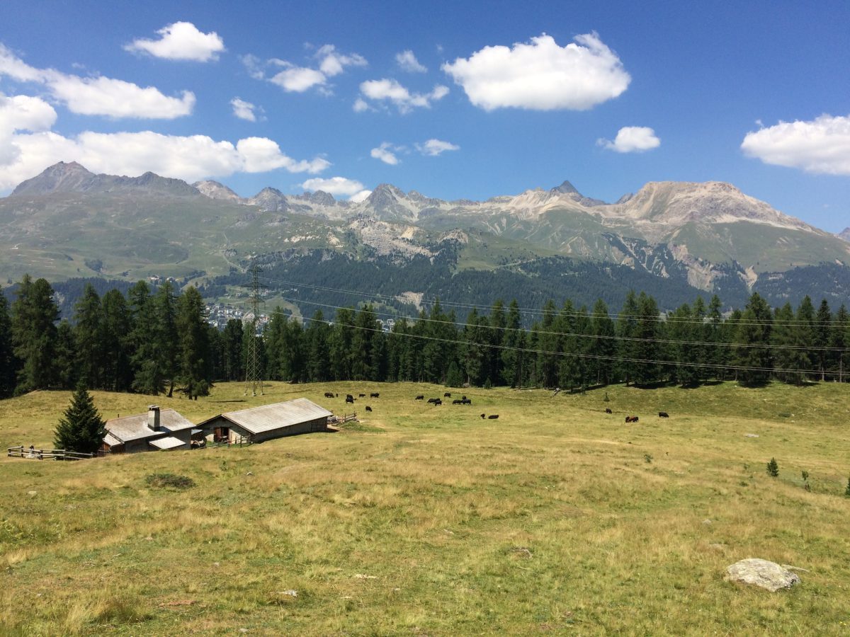 Ein Stück auf demselben Weg bis zur Baumgrenze und dann Richtung Alp Staz runter, an der über 1000 jährigen Arve vorbei. Bei der Alp Staz auf dem Wanderweg bleiben und Richtung St. Moritz Bad weiter.