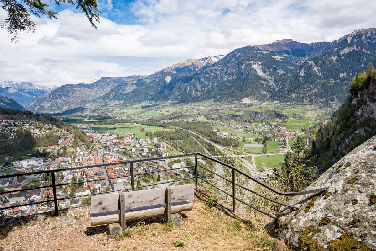 Die Route startet in Thusis beim Hotel Weiss Kreuz. Nach wenigen Metern verlässt man die befestigte Strasse und bewegt sich von da an auf abwechlsungreichen Trails. Vorbei an der Burg Ehrenfels steigt die Strecke in Richtung Crap Carschenna, von wo aus man einen atemberaubenden Weitblick auf das ganze Domleschg geniessen kann. Nach einem kurzen Abstieg bewegt man sich in der Viamala-Schlucht auf einem schmalen Single-Trail mit Blick hinunter in die eindrückliche Schlucht. Hier ist konzentriertes Laufen notwendig, denn der Weg ist zwar einfach zu begehen, allerdings etwas exponiert. Schon bald folgt der Traversinersteg, eine rund 70 Meter über dem Boden hängende Treppe. In der Schlucht folgt man weiter dem Rhein bevor man die Richtung ändert und auf der anderen Flussseite zurück in Richtung Thusis läuft. Nachdem zum zweiten Mal das Besucherzentrum im der Schlucht passiert wurde, geht es für ein kurzes Stück durch den Autotunnel. Via Rongellen und Crapteig erreicht man anschliessend über einen steilen und technisch anspruchvollen Downhill den Ausgangspunkt.